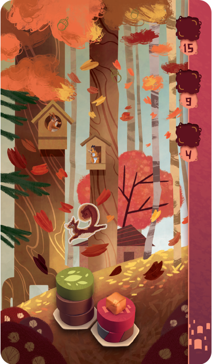 Part of the wonderful puzzle of Harmonies is then trying your best to maximize how many animals you can house at once. Once a cube is placed on a tile you can’t place further cubes or stack any more tiles on that space. Those two stacked rocks that make a medium hill are now stuck as a medium hill, but the monkey that moved into that space will hopefully make up the difference in points by the end of the game. At least you hope.