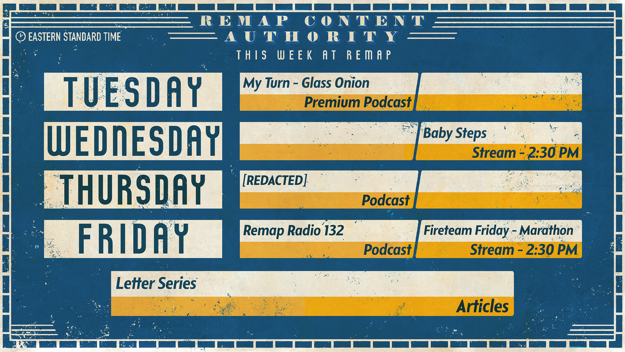 - ARTICLE: Letter Series – Topic TBD. We're also due for a Remap Recommends here.