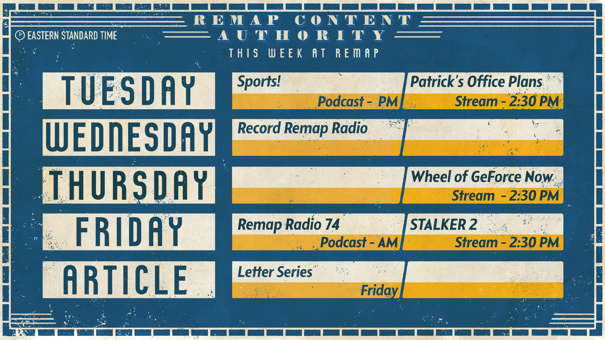- STREAM: S.T.A.L.K.E.R. 2 – Oh shit, it's here. Join Rob and Cado (and me, if I have some extra time) as they venture into the Zone to see what's hiding.