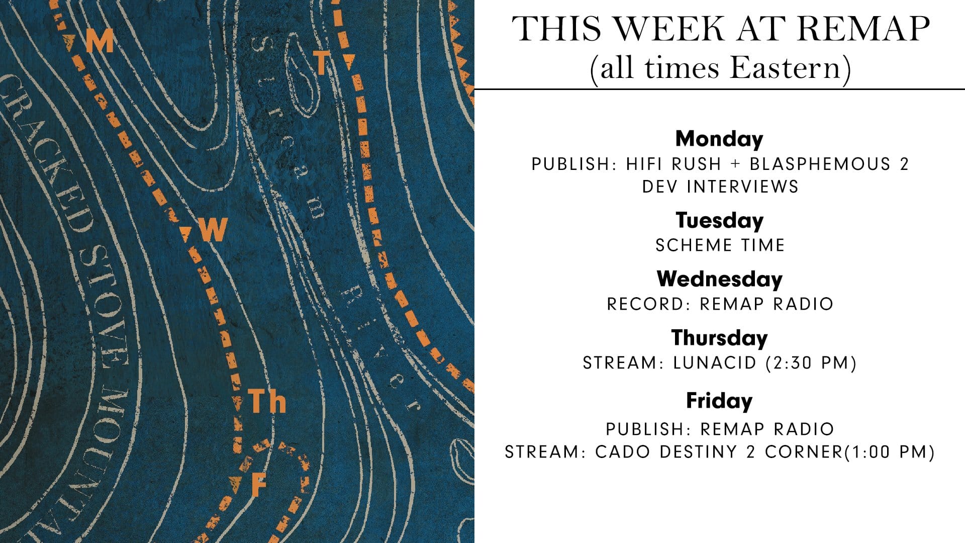 - FRIDAY: Remap Radio hits podcast feeds, while Cado checks out a bunch of the new content in Destiny 2. (Patrick will try to join them, time permitting.)