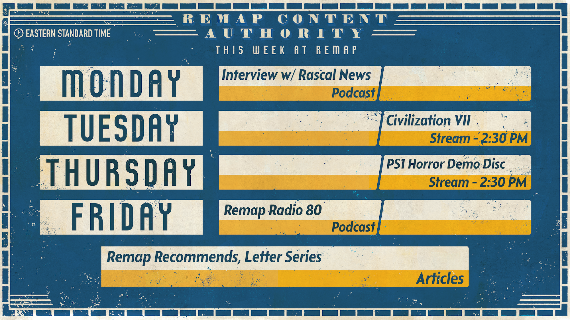 - PODCAST: Remap Interview – It's nice to chat with other folks running independent media outlets, so when Rascal reached out about a podcast to help promote their pledge drive, I said yes, even though I know [checks notes] nothing about tabletop RPGs. Fortunately, Cado came along for the ride.