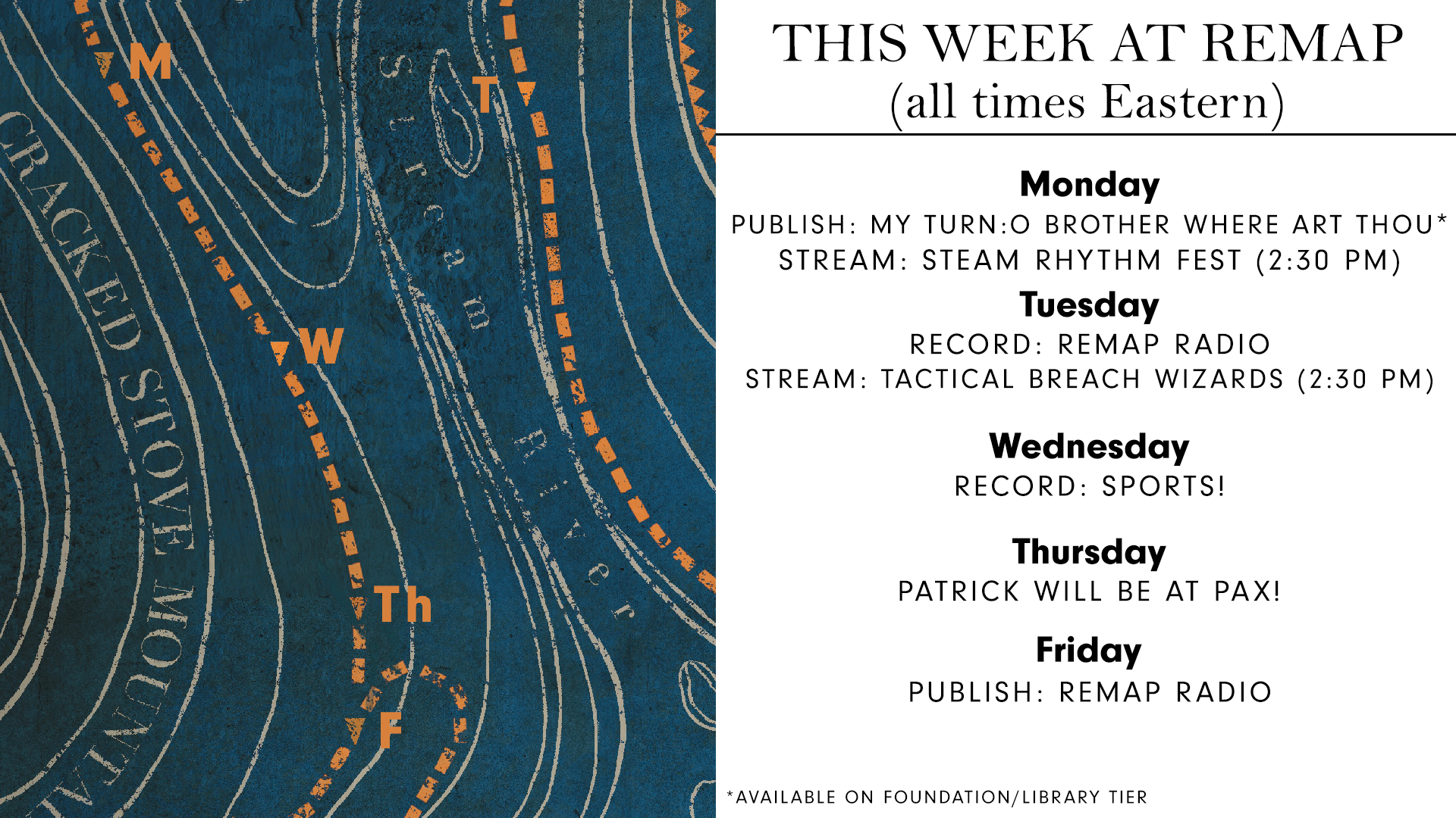 - FRIDAY: Remap Radio will publish and close out a quieter second half of the week, but please do not hesitate to say hi if you see me walking around PAX!